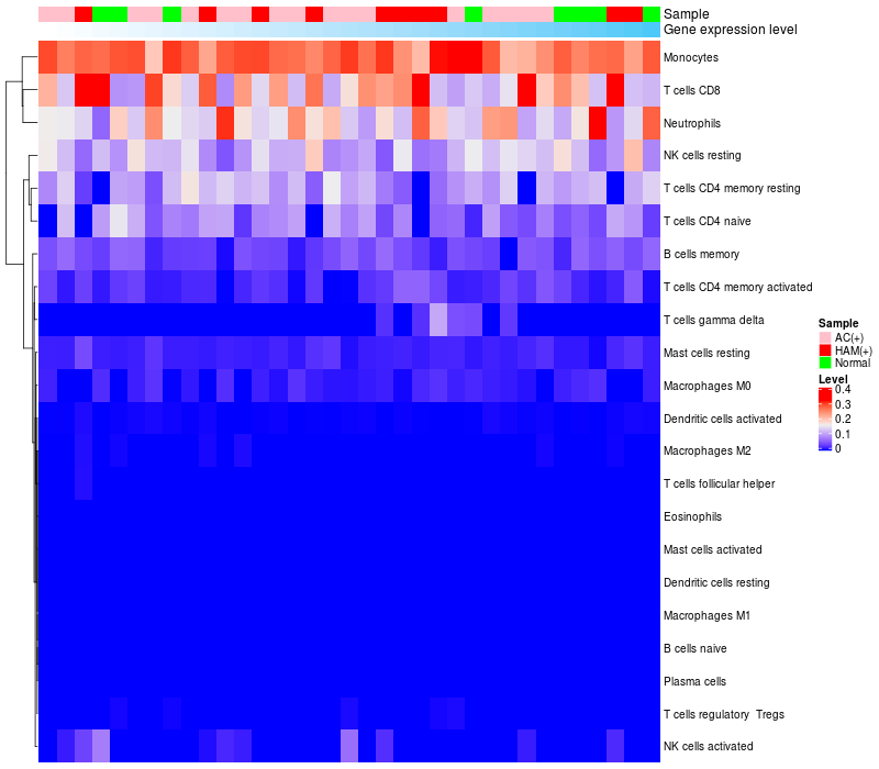 Relationship between gene expression and immune infiltrating cell level