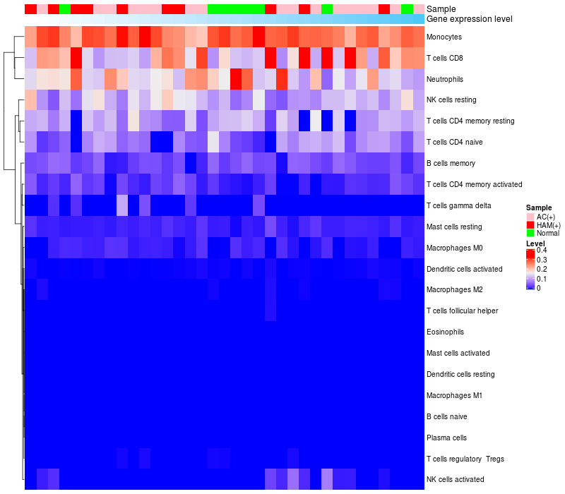 Lollipop of SIRT4 expression and immune infiltrating cell level correlation result in HTLV1+ samples