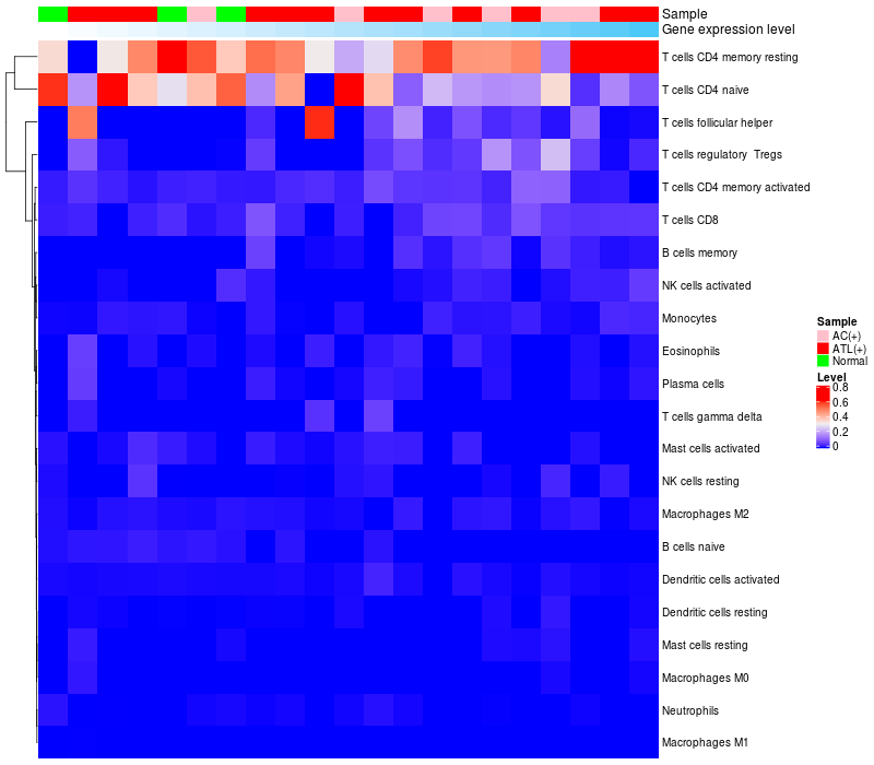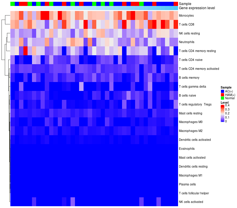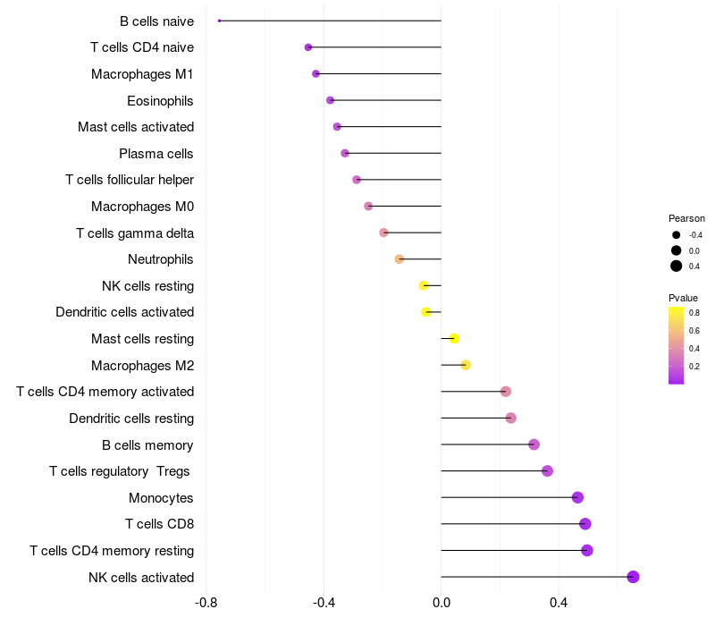 Relationship between gene expression and immune infiltrating cell level