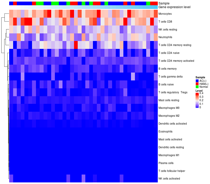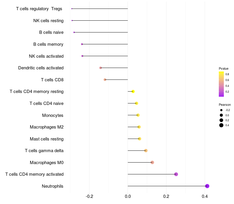 Relationship between gene expression and immune infiltrating cell level