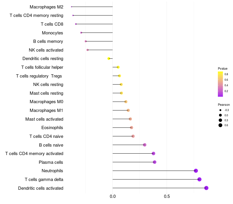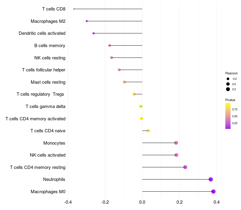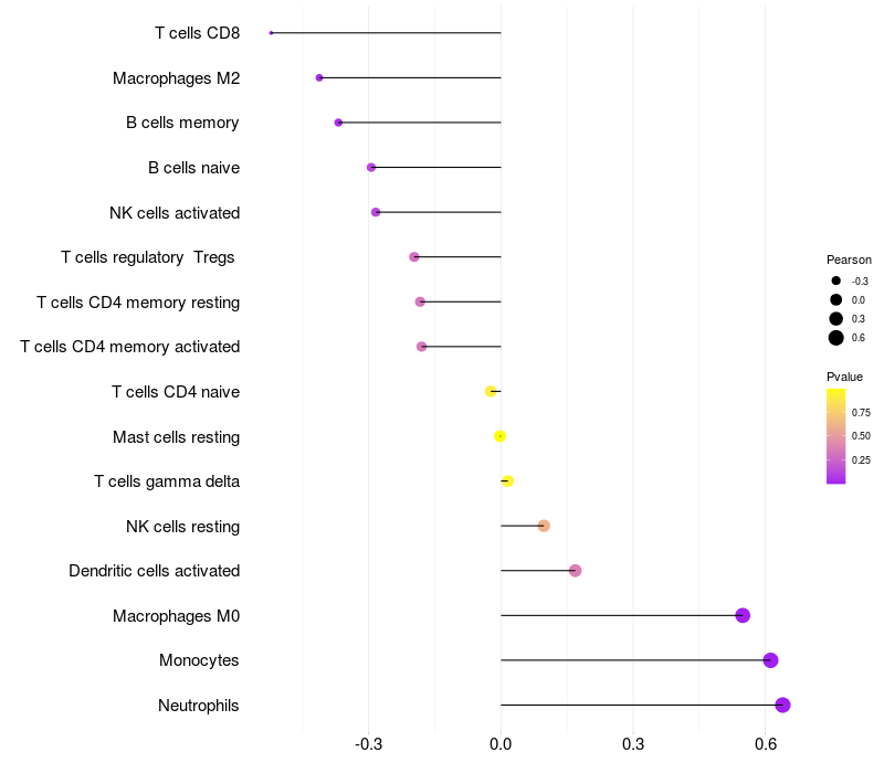 Lollipop of SLC22A15 expression and immune infiltrating cell level correlation result in HTLV1+ samples