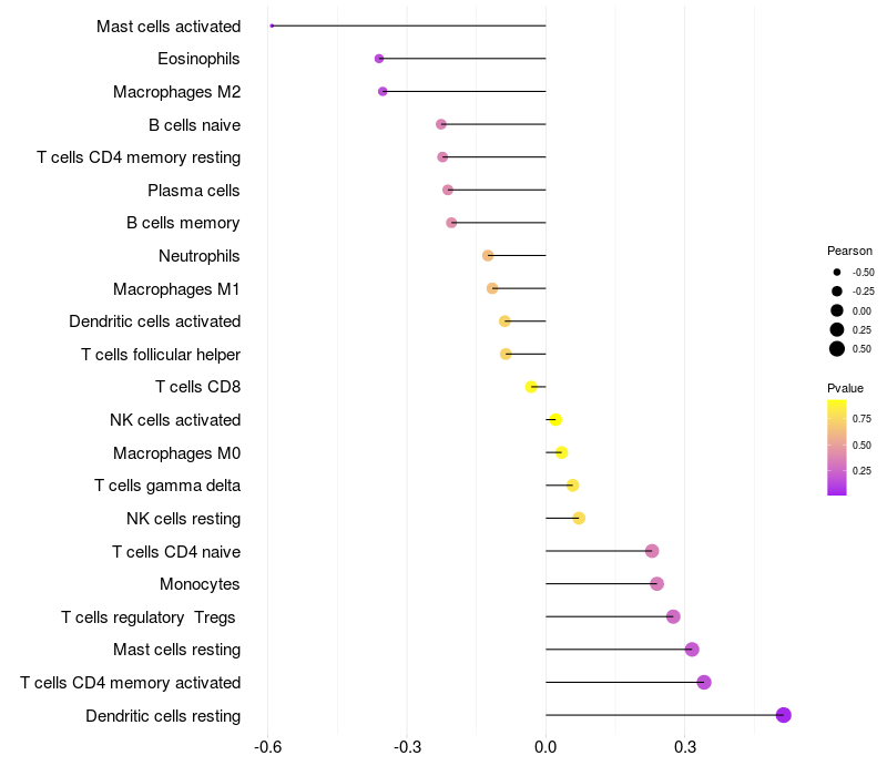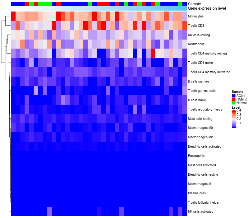Relationship between gene expression and immune infiltrating cell level