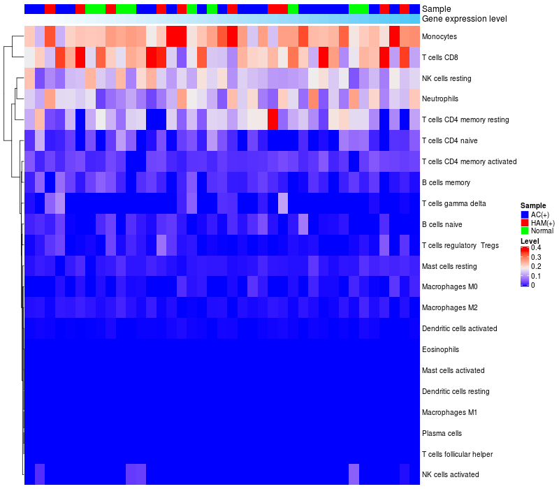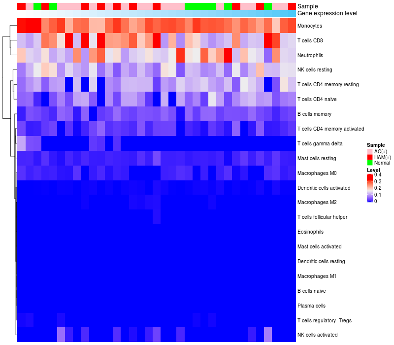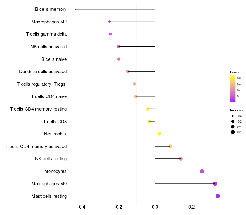 Lollipop of SLC35E1 expression and immune infiltrating cell level correlation result in HTLV1+ samples