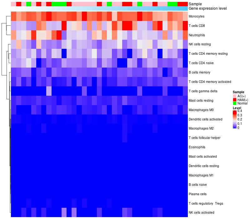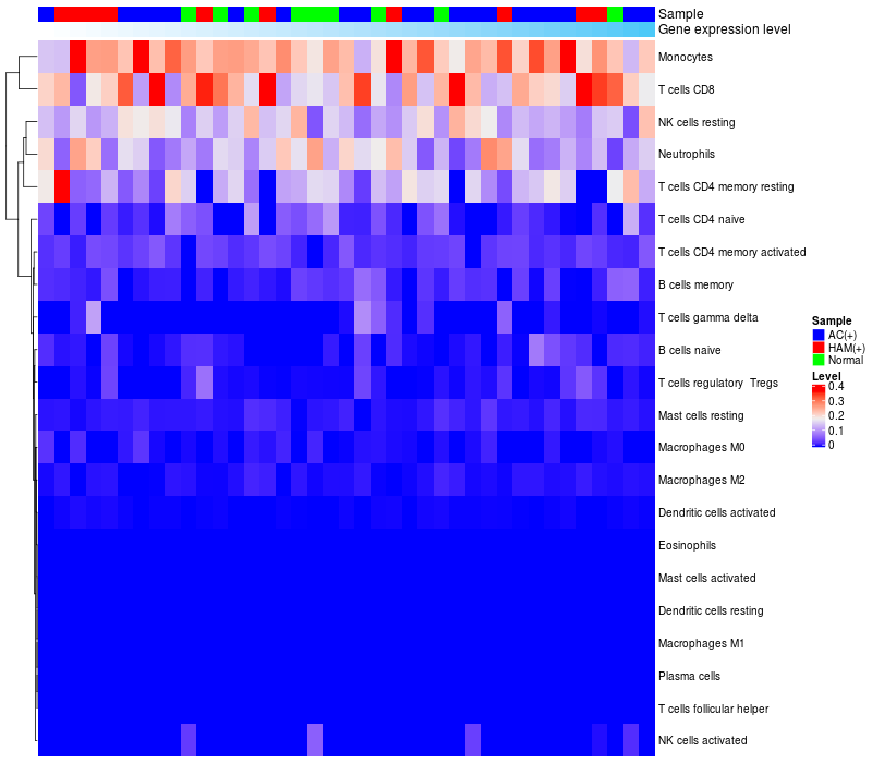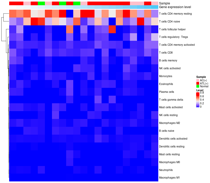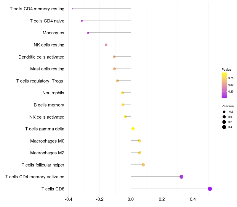 Lollipop of SLC35F4 expression and immune infiltrating cell level correlation result in HTLV1+ samples