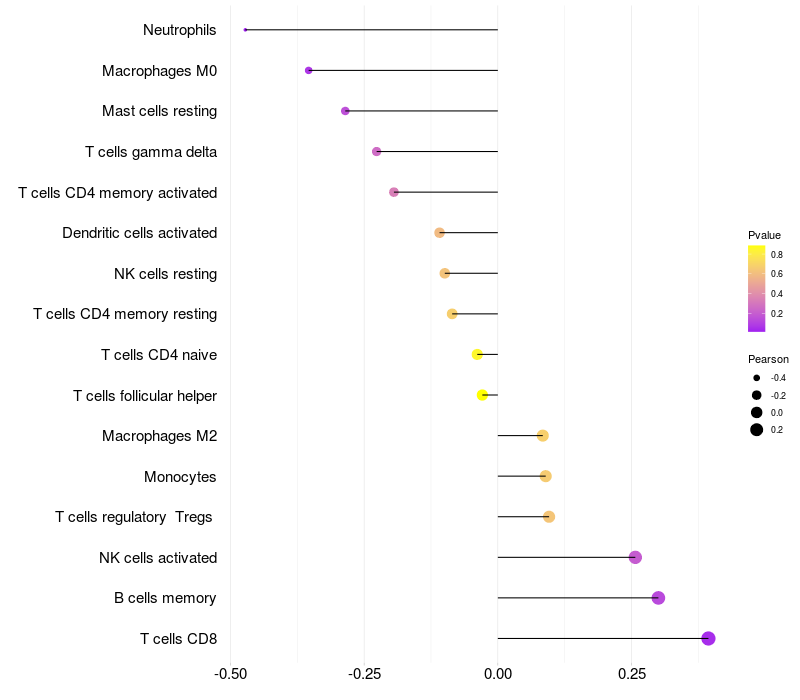 Relationship between gene expression and immune infiltrating cell level