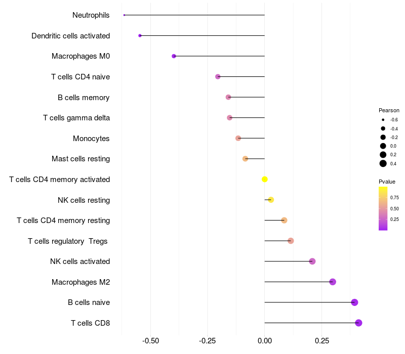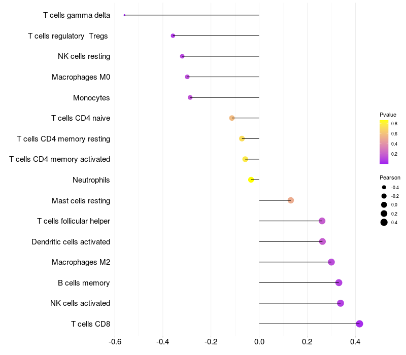 Lollipop of SLC39A6 expression and immune infiltrating cell level correlation result in HTLV1+ samples