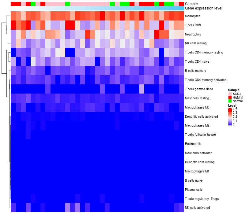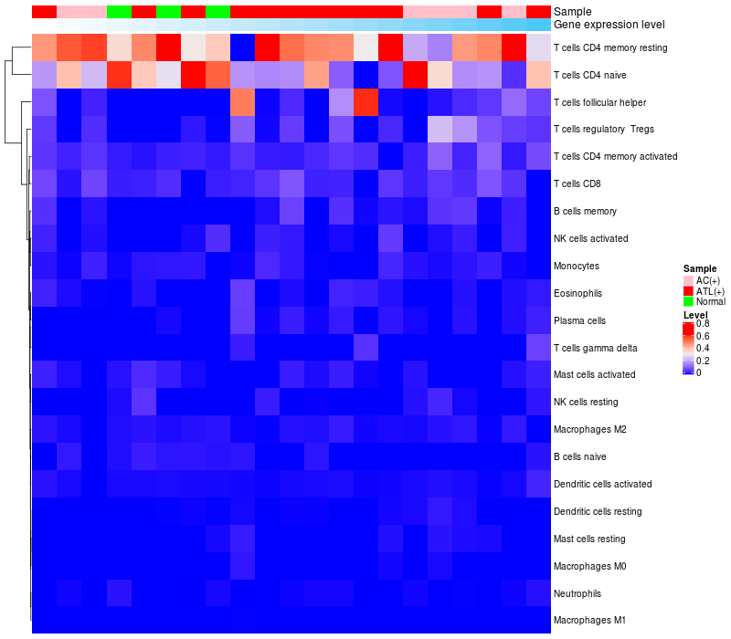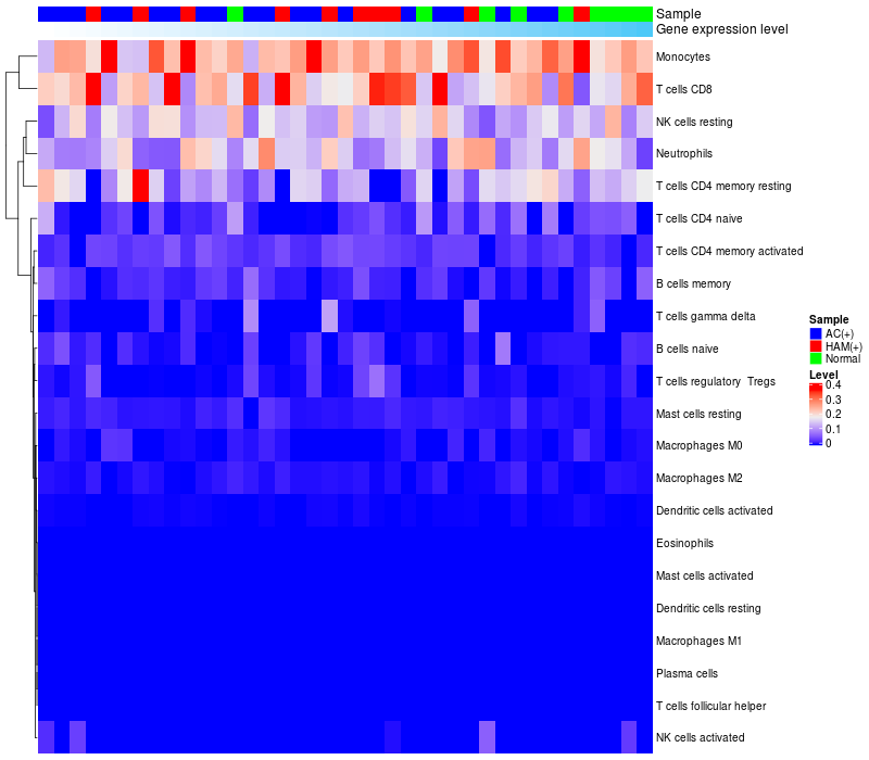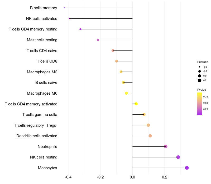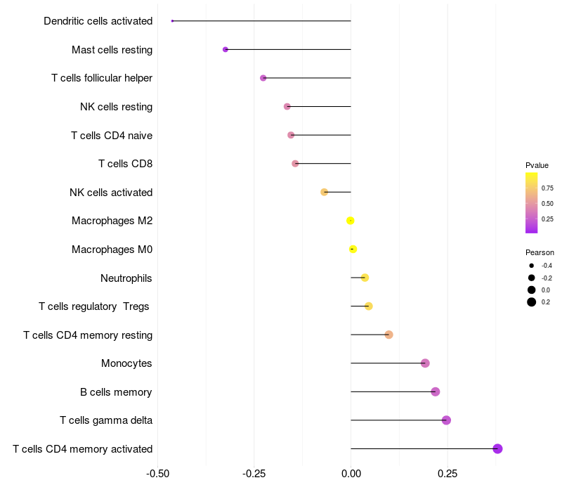 Lollipop of SLC7A10 expression and immune infiltrating cell level correlation result in HTLV1+ samples