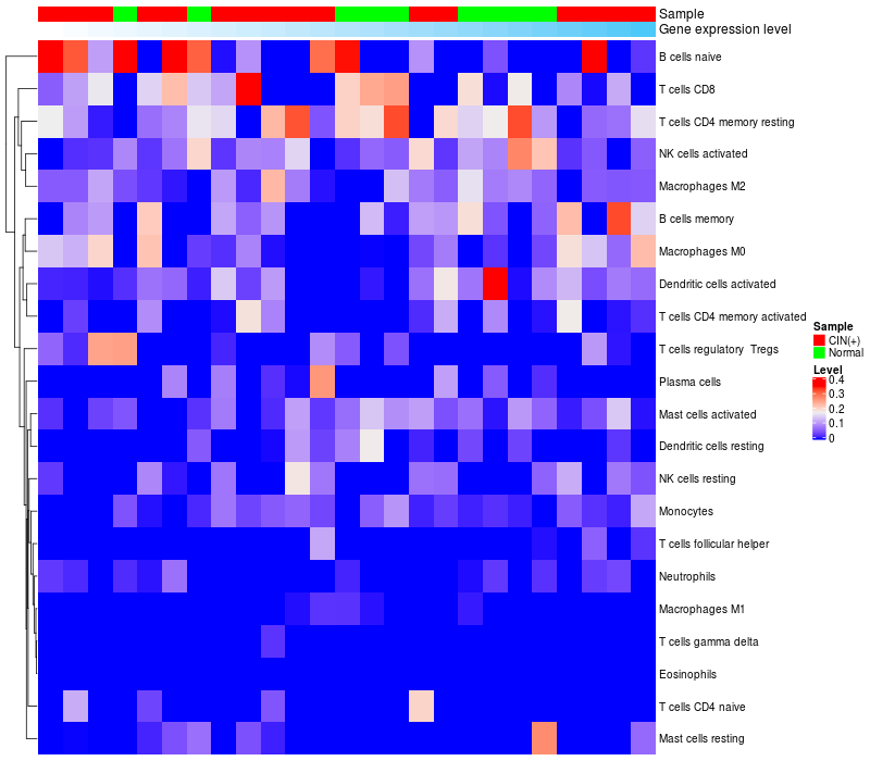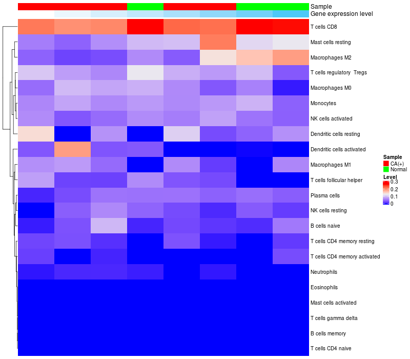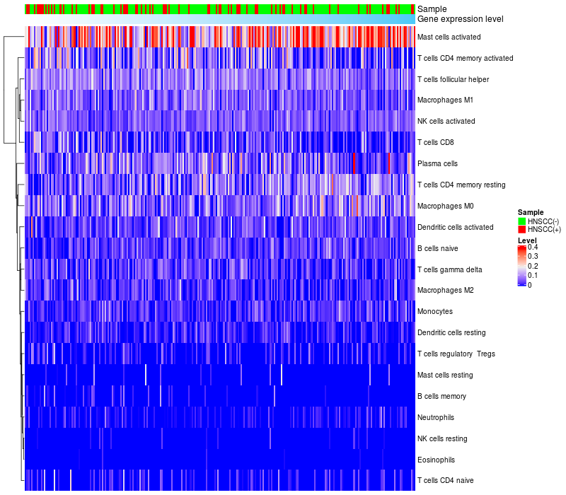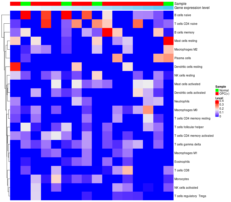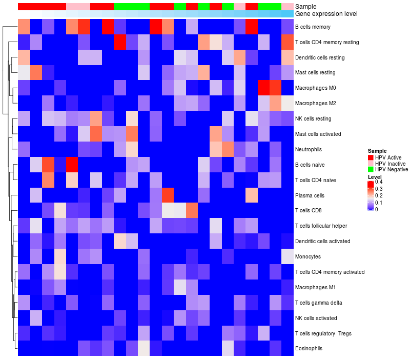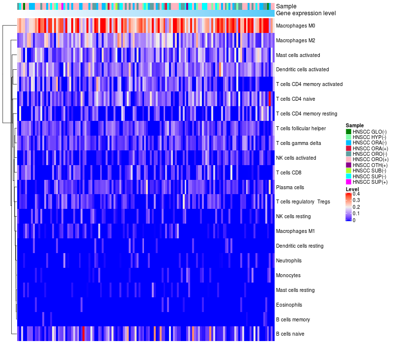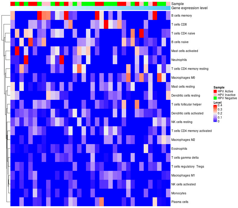 Lollipop of SMARCA1 expression and immune infiltrating cell level correlation result in HPV+ samples