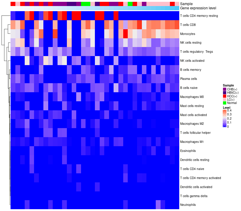 Liver hepatocellular carcinoma HCV (HBV+)(86), Liver hepatocellular carcinoma HCV (HBV-)(19), Liver hepatocellular carcinoma (HBV+)(209), Liver hepatocellular carcinoma (HBV+)(60), Paracancerous HCV (HBV+)(4), Paracancerous (HBV-)(28), Paracancerous (HBV+)(18) |