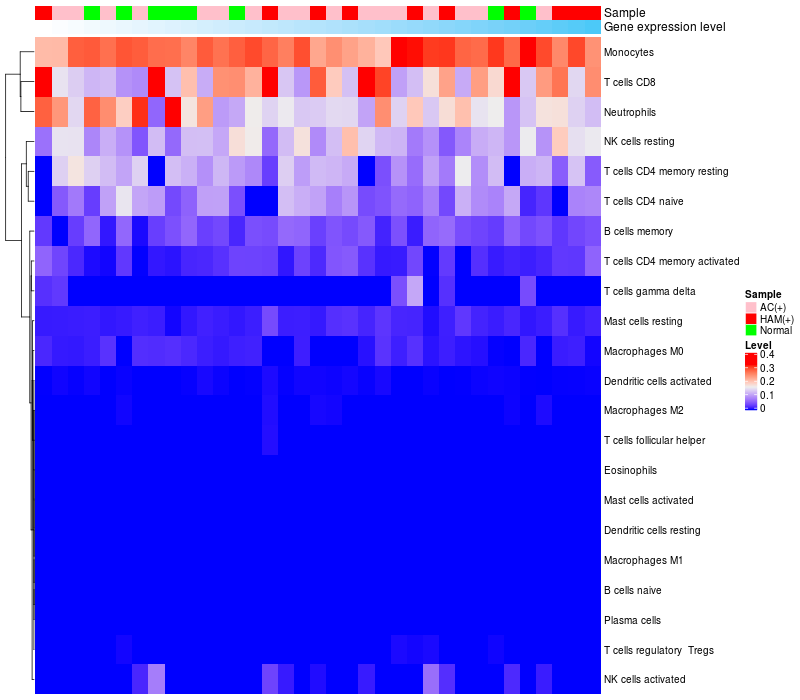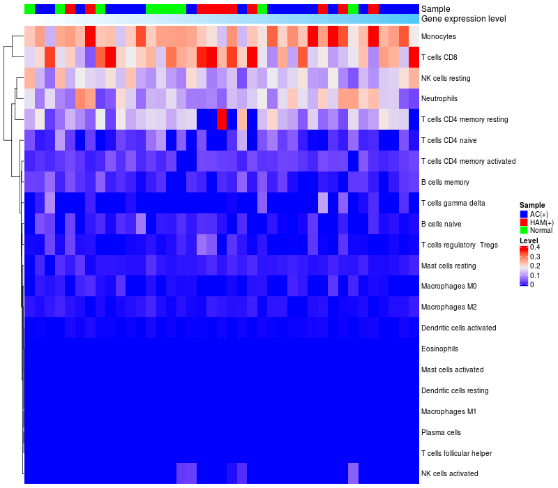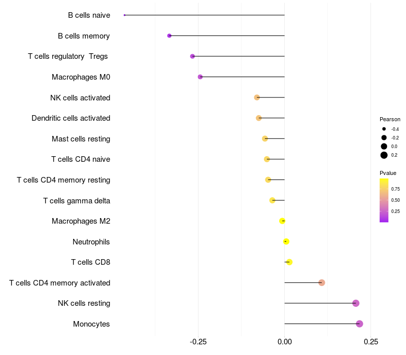 Lollipop of SPAG17 expression and immune infiltrating cell level correlation result in HTLV1+ samples