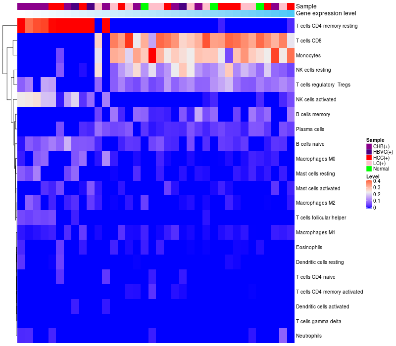 Liver hepatocellular carcinoma HCV (HBV+)(86), Liver hepatocellular carcinoma HCV (HBV-)(19), Liver hepatocellular carcinoma (HBV+)(209), Liver hepatocellular carcinoma (HBV+)(60), Paracancerous HCV (HBV+)(4), Paracancerous (HBV-)(28), Paracancerous (HBV+)(18) |