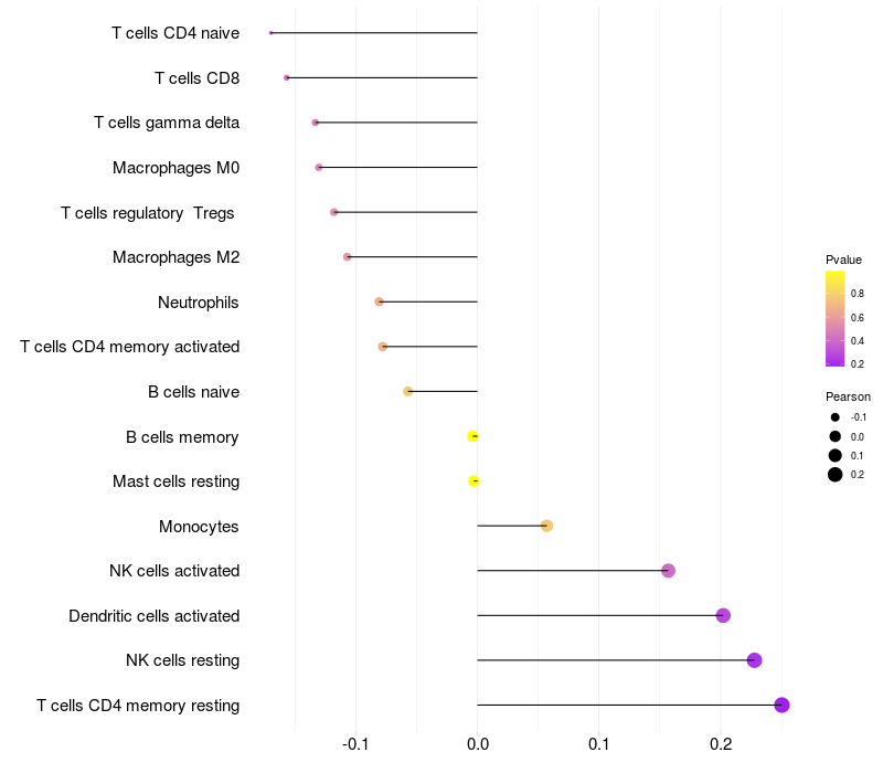 Relationship between gene expression and immune infiltrating cell level