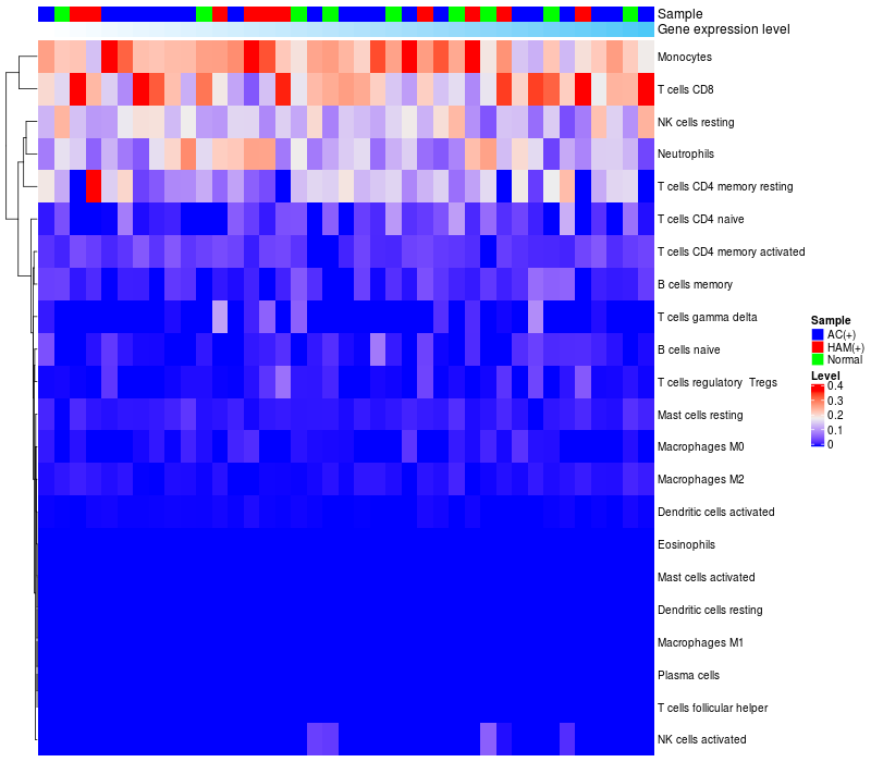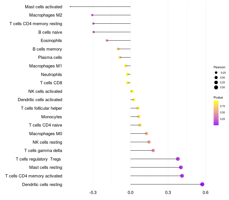 Lollipop of SPATA18 expression and immune infiltrating cell level correlation result in HTLV1+ samples