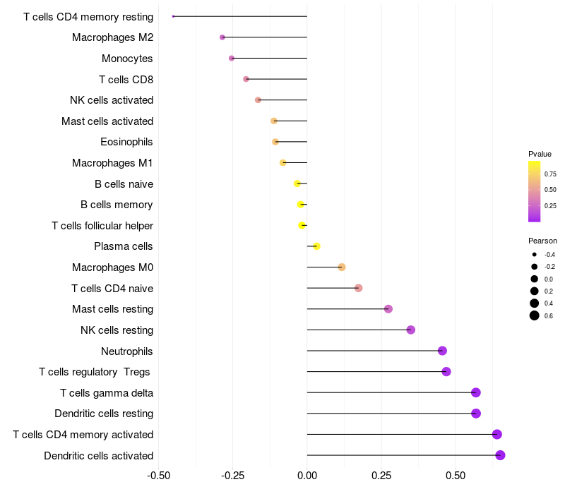 Lollipop of SPATS1 expression and immune infiltrating cell level correlation result in HTLV1+ samples