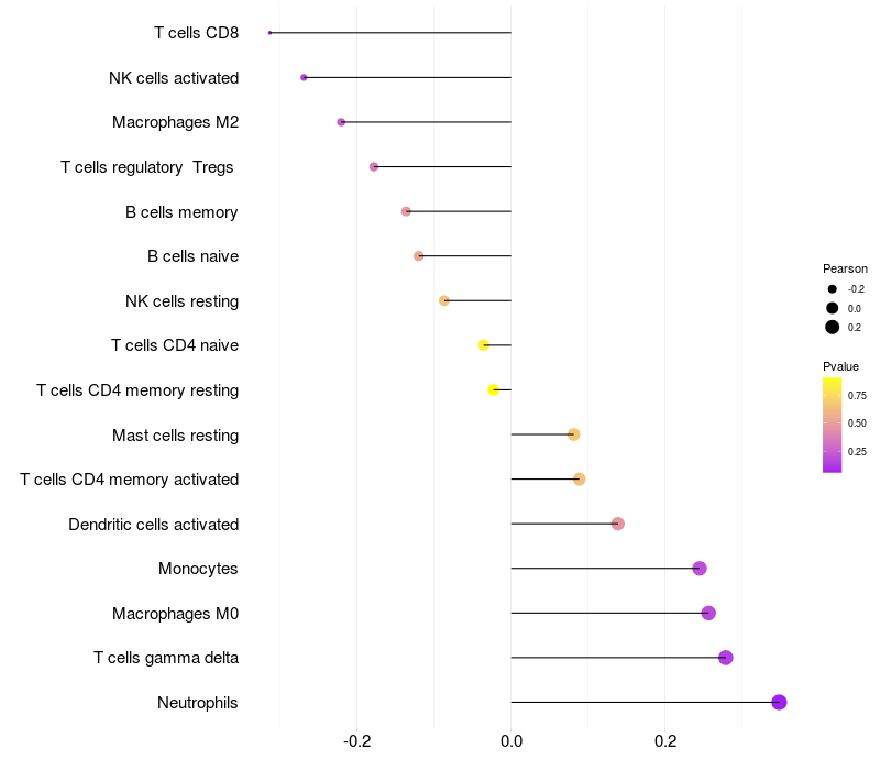 Relationship between gene expression and immune infiltrating cell level