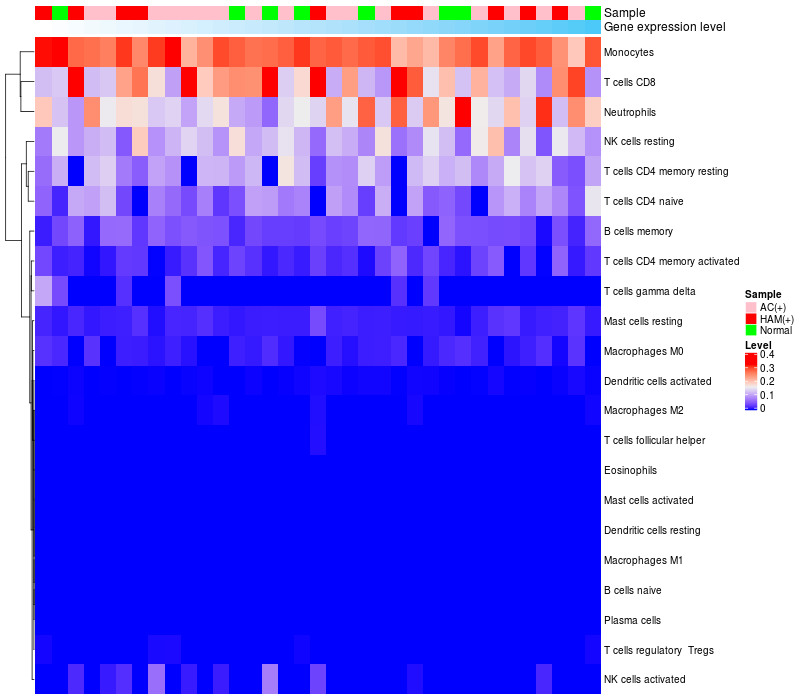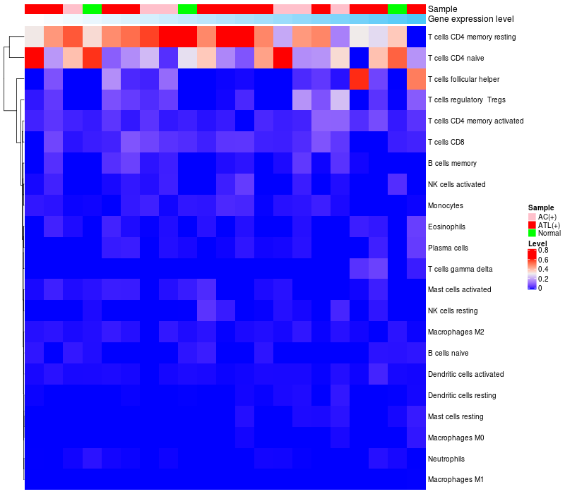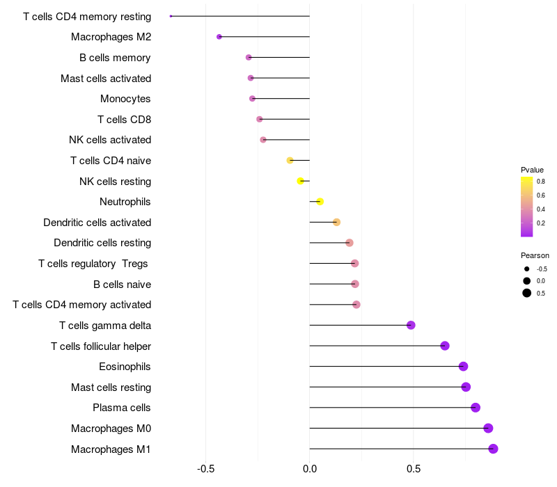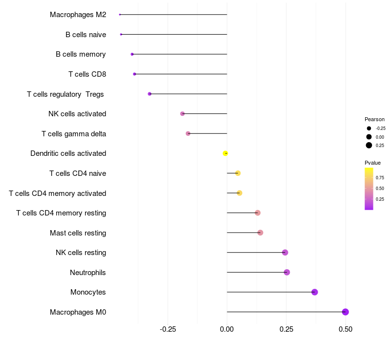 Relationship between gene expression and immune infiltrating cell level