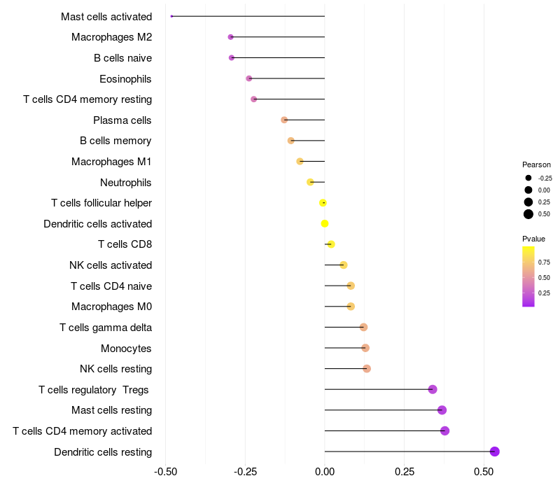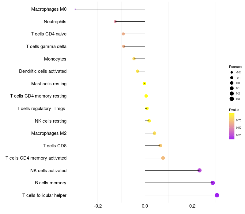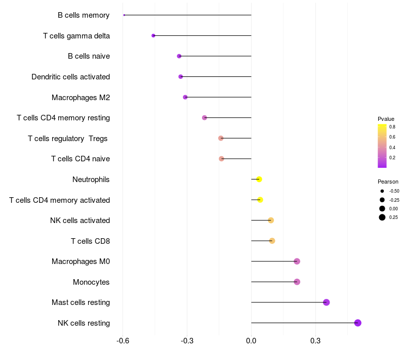 Lollipop of STOML3 expression and immune infiltrating cell level correlation result in HTLV1+ samples