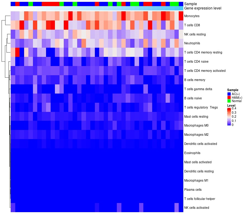 Relationship between gene expression and immune infiltrating cell level