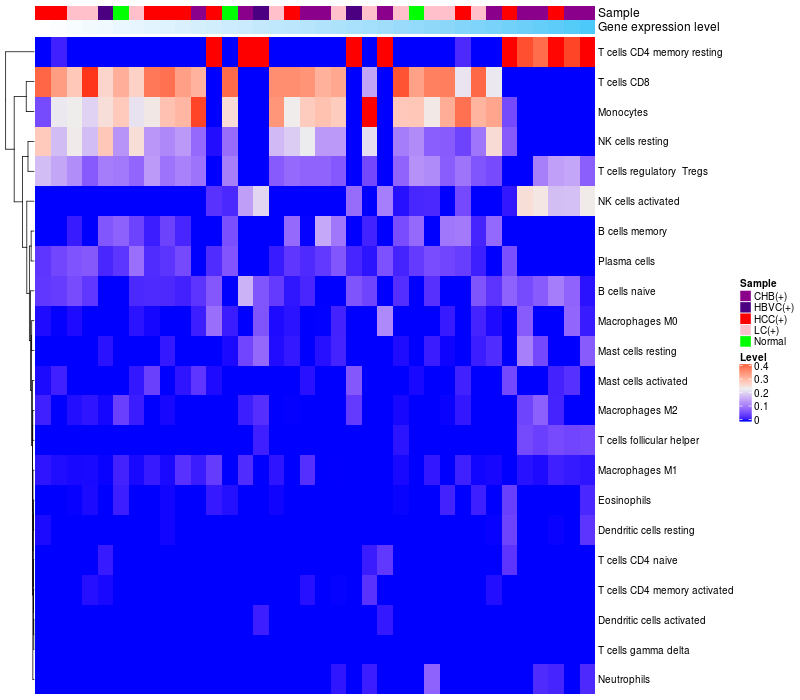 Liver hepatocellular carcinoma HCV (HBV+)(86), Liver hepatocellular carcinoma HCV (HBV-)(19), Liver hepatocellular carcinoma (HBV+)(209), Liver hepatocellular carcinoma (HBV+)(60), Paracancerous HCV (HBV+)(4), Paracancerous (HBV-)(28), Paracancerous (HBV+)(18) |