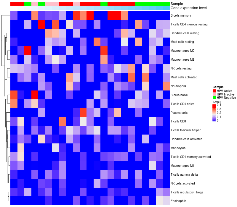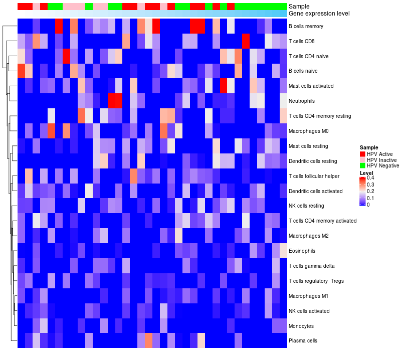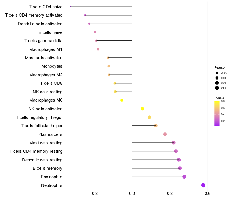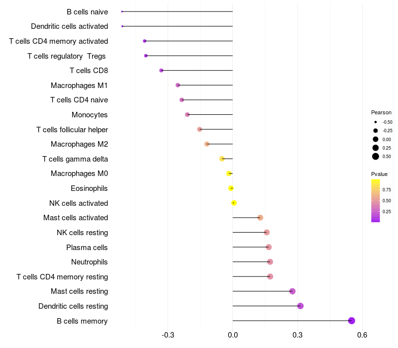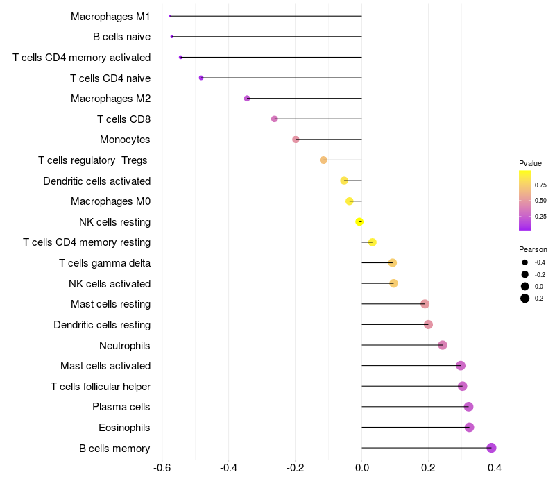 Lollipop of UBE2E4P expression and immune infiltrating cell level correlation result in HPV+ samples