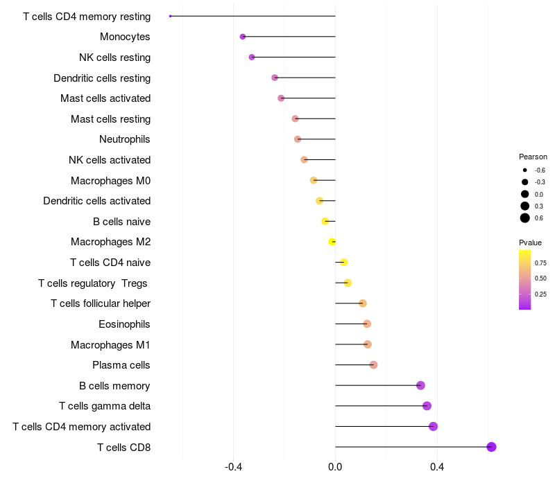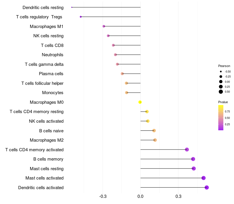 HeatMap of cell type fractions in all samples Lollipop of UGT8 expression and immune infiltrating cell level correlation result in HPV+ samples