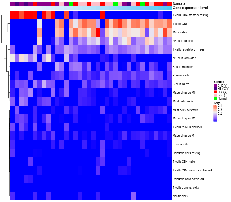 Liver hepatocellular carcinoma HCV (HBV+)(86), Liver hepatocellular carcinoma HCV (HBV-)(19), Liver hepatocellular carcinoma (HBV+)(209), Liver hepatocellular carcinoma (HBV+)(60), Paracancerous HCV (HBV+)(4), Paracancerous (HBV-)(28), Paracancerous (HBV+)(18) |