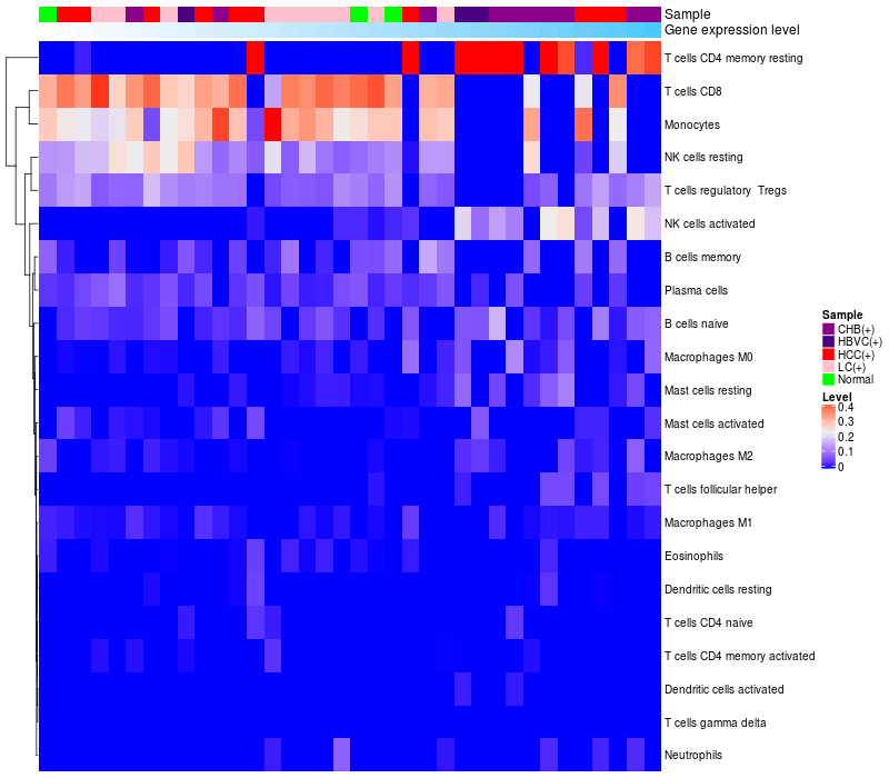 Liver hepatocellular carcinoma HCV (HBV+)(86), Liver hepatocellular carcinoma HCV (HBV-)(19), Liver hepatocellular carcinoma (HBV+)(209), Liver hepatocellular carcinoma (HBV+)(60), Paracancerous HCV (HBV+)(4), Paracancerous (HBV-)(28), Paracancerous (HBV+)(18) |