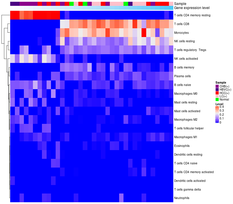 Liver hepatocellular carcinoma HCV (HBV+)(86), Liver hepatocellular carcinoma HCV (HBV-)(19), Liver hepatocellular carcinoma (HBV+)(209), Liver hepatocellular carcinoma (HBV+)(60), Paracancerous HCV (HBV+)(4), Paracancerous (HBV-)(28), Paracancerous (HBV+)(18) |