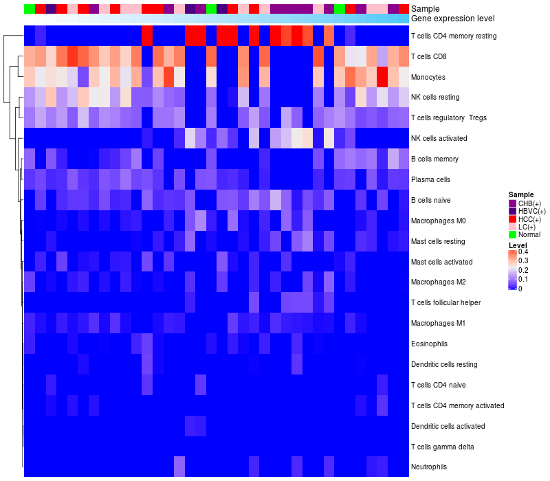 Relationship between gene expression and immune infiltrating cell level