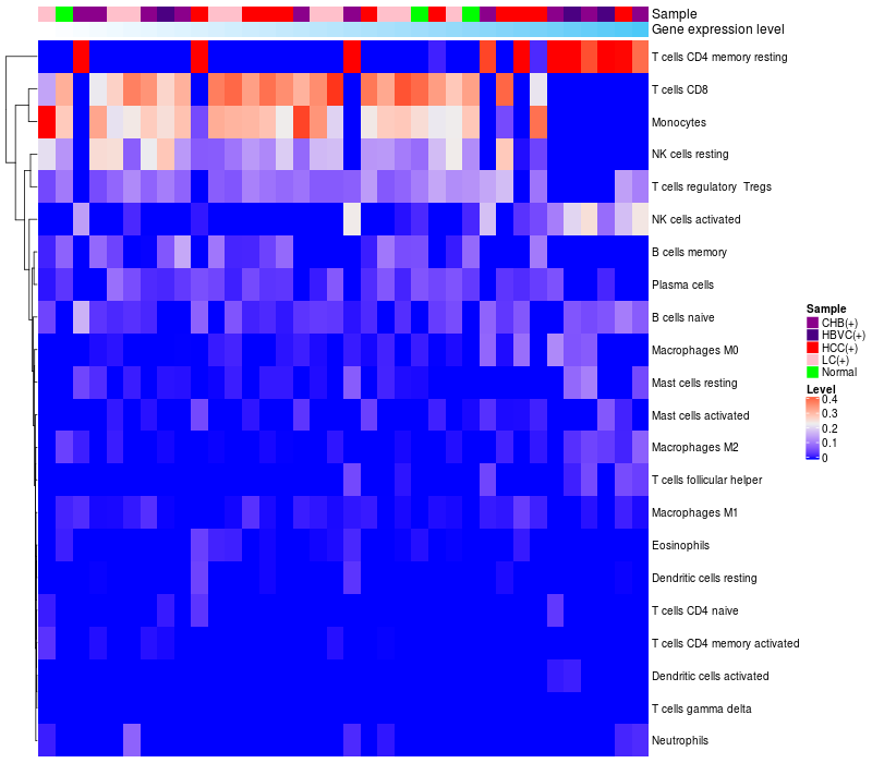 Relationship between gene expression and immune infiltrating cell level