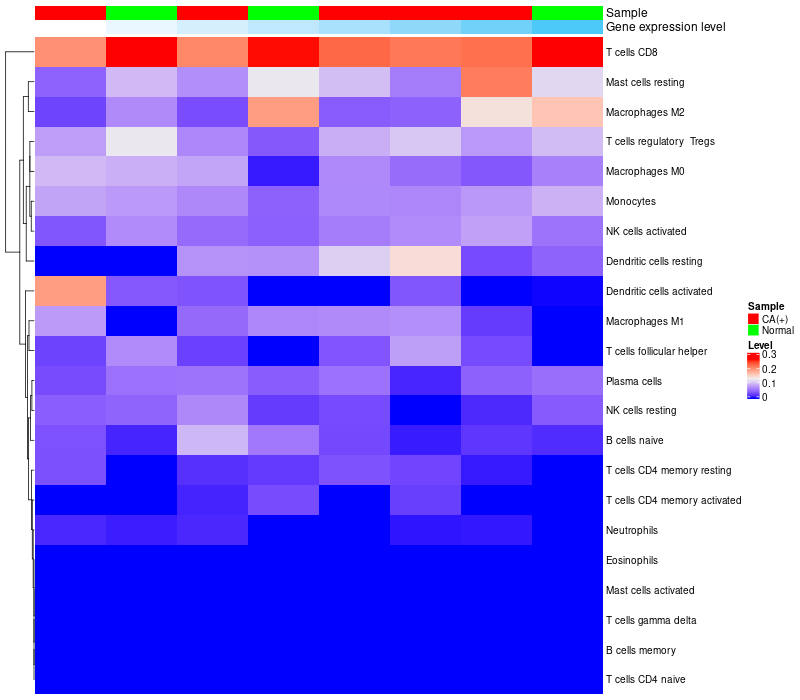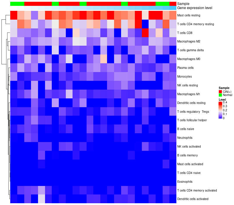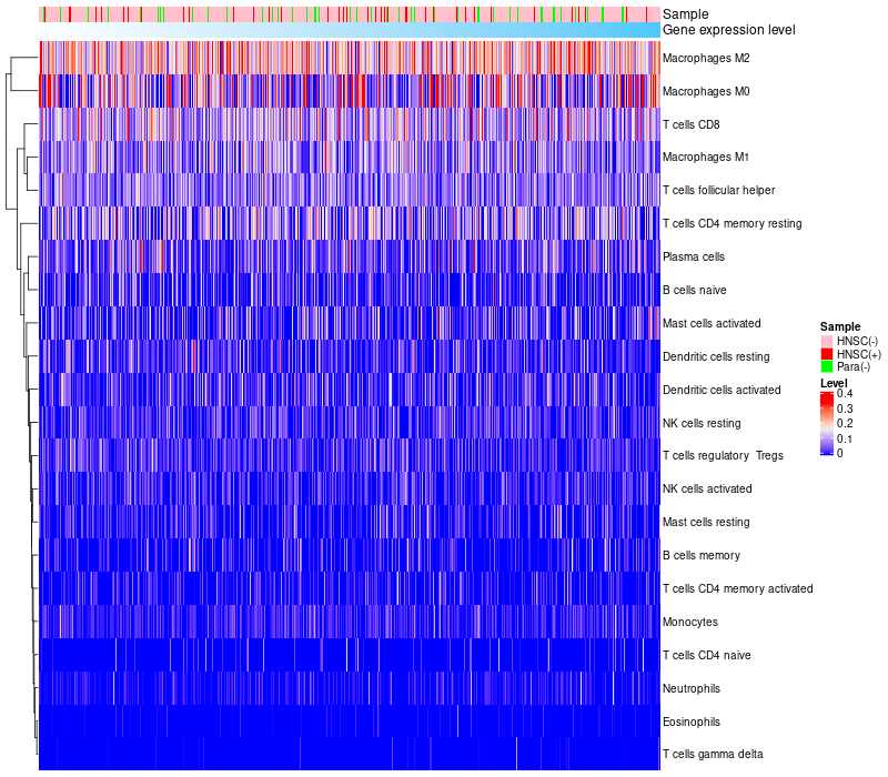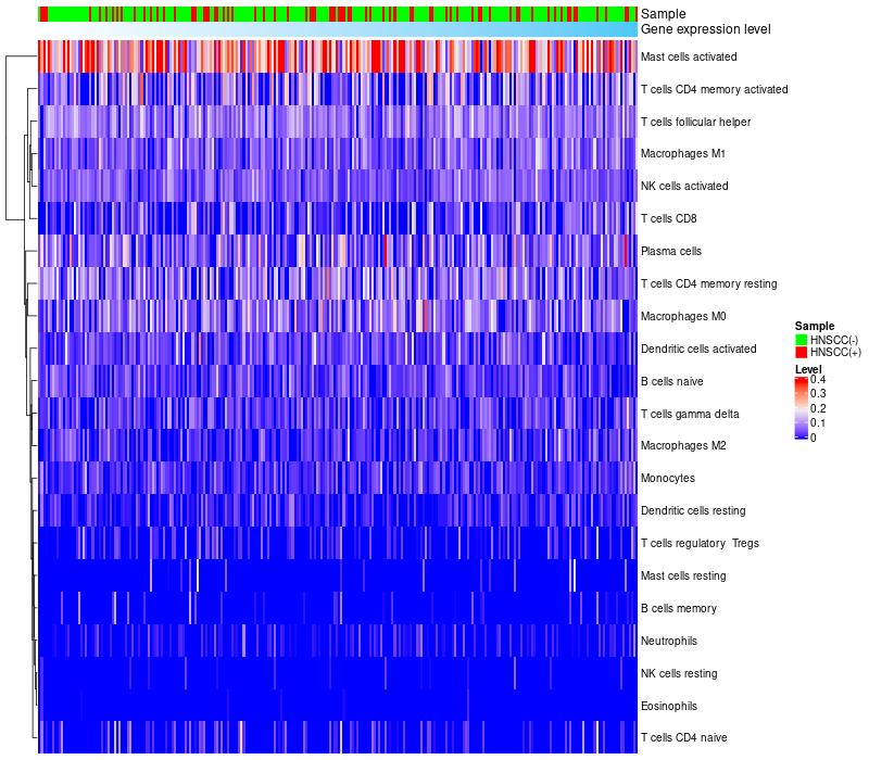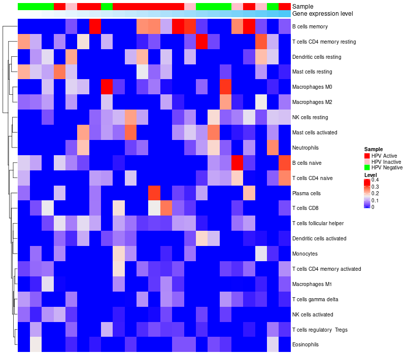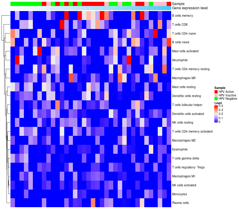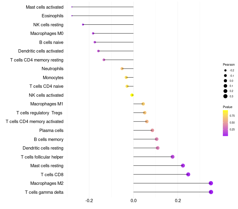 Lollipop of VENTXP1 expression and immune infiltrating cell level correlation result in HPV+ samples