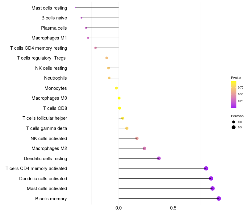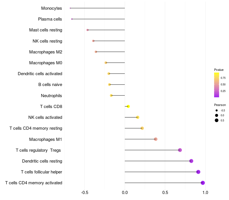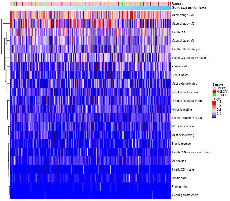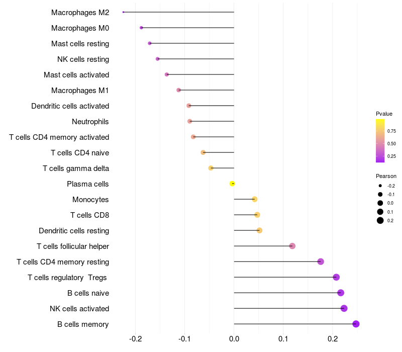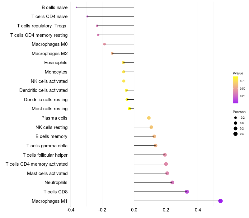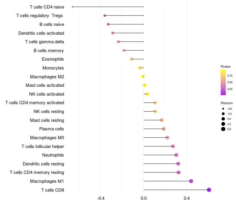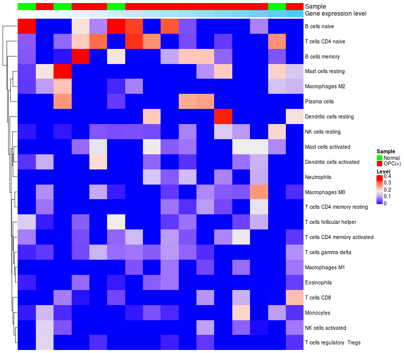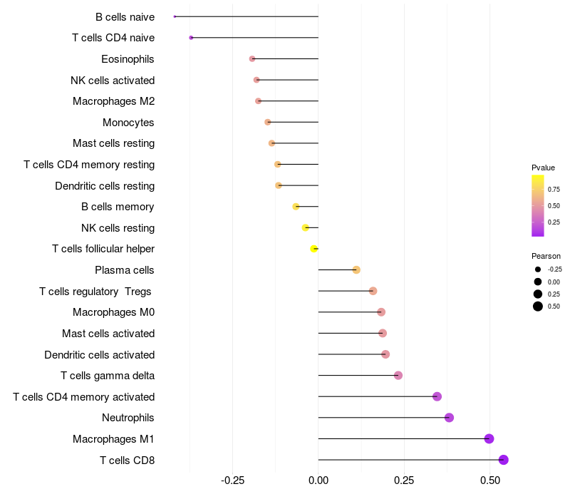Relationship between gene expression and immune infiltrating cell level