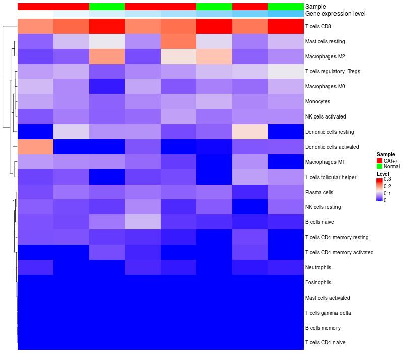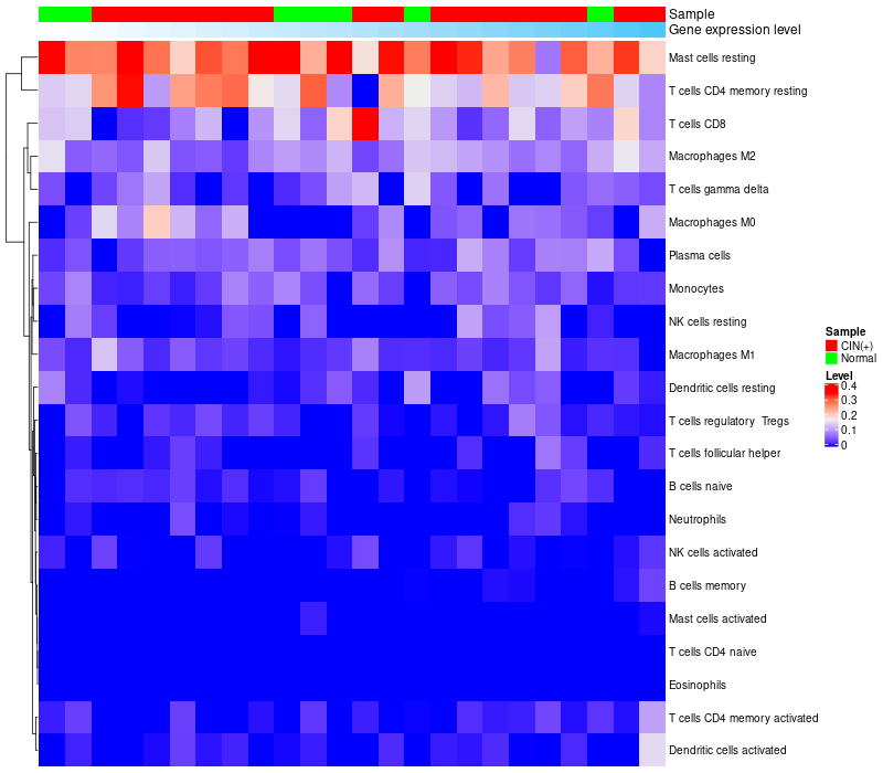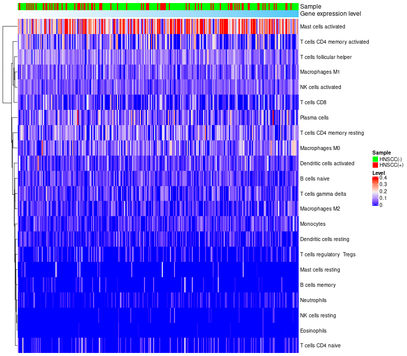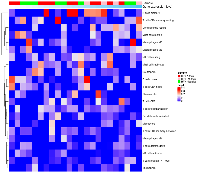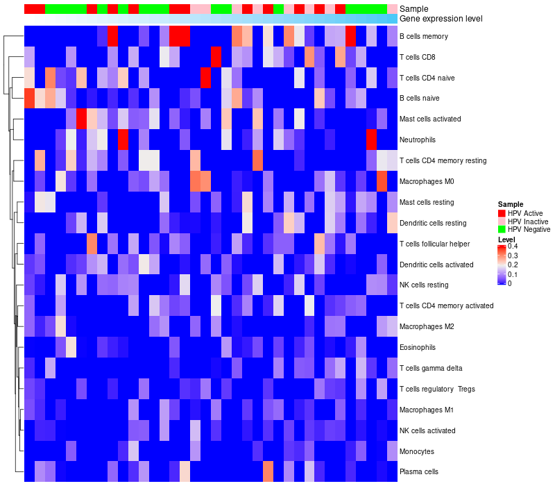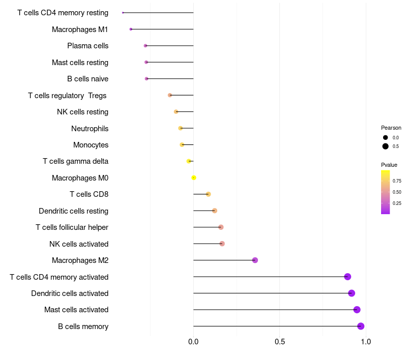 Lollipop of VGLL2 expression and immune infiltrating cell level correlation result in HPV+ samples
