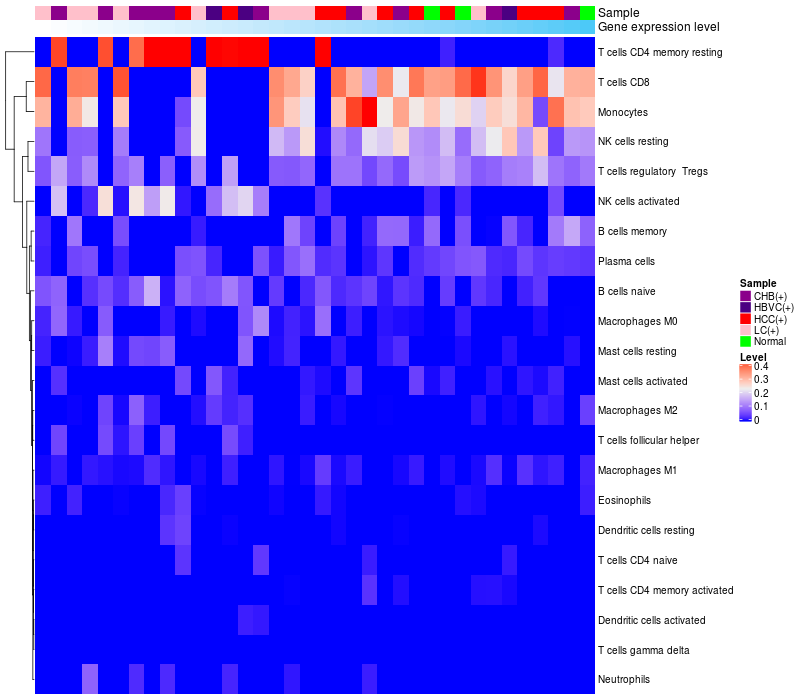 Relationship between gene expression and immune infiltrating cell level