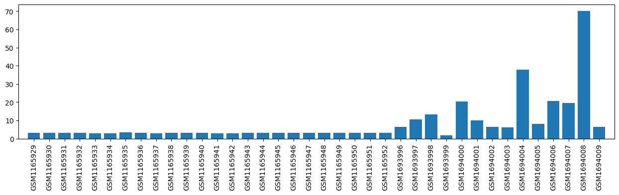 | GSM1693999 | Peripheral blood mononuclear cells from RA before therapy, replicate 1 | strain/background: Wistar gender: female cell type: peripheral blood mononuclear cells subject group: rheumatoid arthritis rats before therapy | 1.7666211975000001 |
