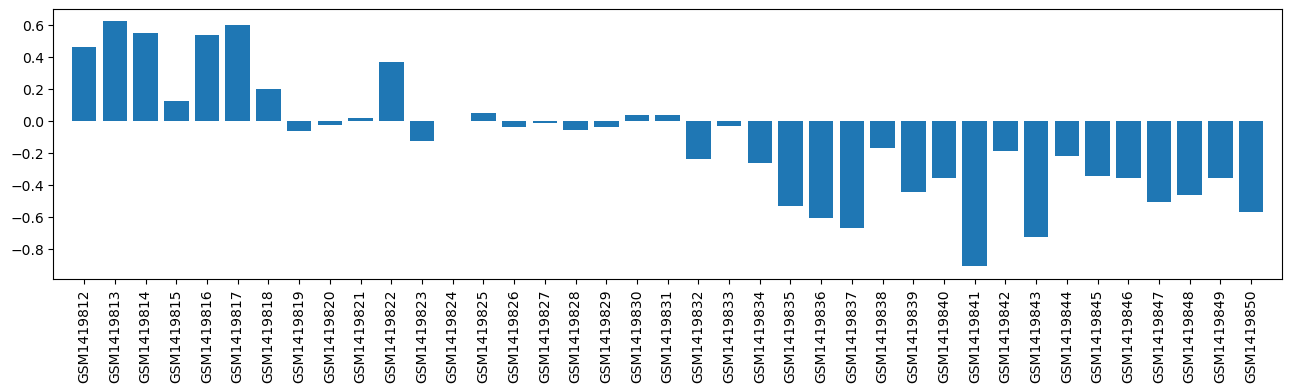| GSM1419839 | 2Hz_NR_24h_PAG4 rat | strain: Sprague-Dawley tissue: PAG treatment: 2Hz electroacupuncture responder type: low responder(NR) time: 24h;strain: Sprague-Dawley treatment: control tissue: PAG | -0.44598696 |