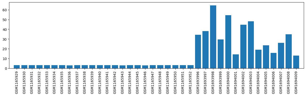 | GSM1694000 | Peripheral blood mononuclear cells from RA before therapy, replicate 2 | strain/background: Wistar gender: female cell type: peripheral blood mononuclear cells subject group: rheumatoid arthritis rats before therapy | 54.339663995 |