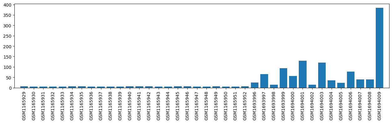 | GSM1693999 | Peripheral blood mononuclear cells from RA before therapy, replicate 1 | strain/background: Wistar gender: female cell type: peripheral blood mononuclear cells subject group: rheumatoid arthritis rats before therapy | 93.46075795 |