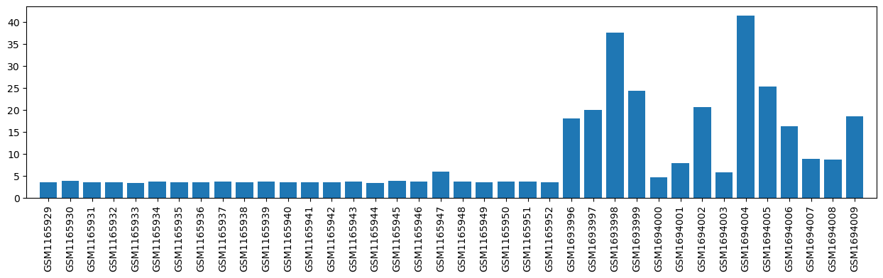 | GSM1694000 | Peripheral blood mononuclear cells from RA before therapy, replicate 2 | strain/background: Wistar gender: female cell type: peripheral blood mononuclear cells subject group: rheumatoid arthritis rats before therapy | 4.6911763644999995 |