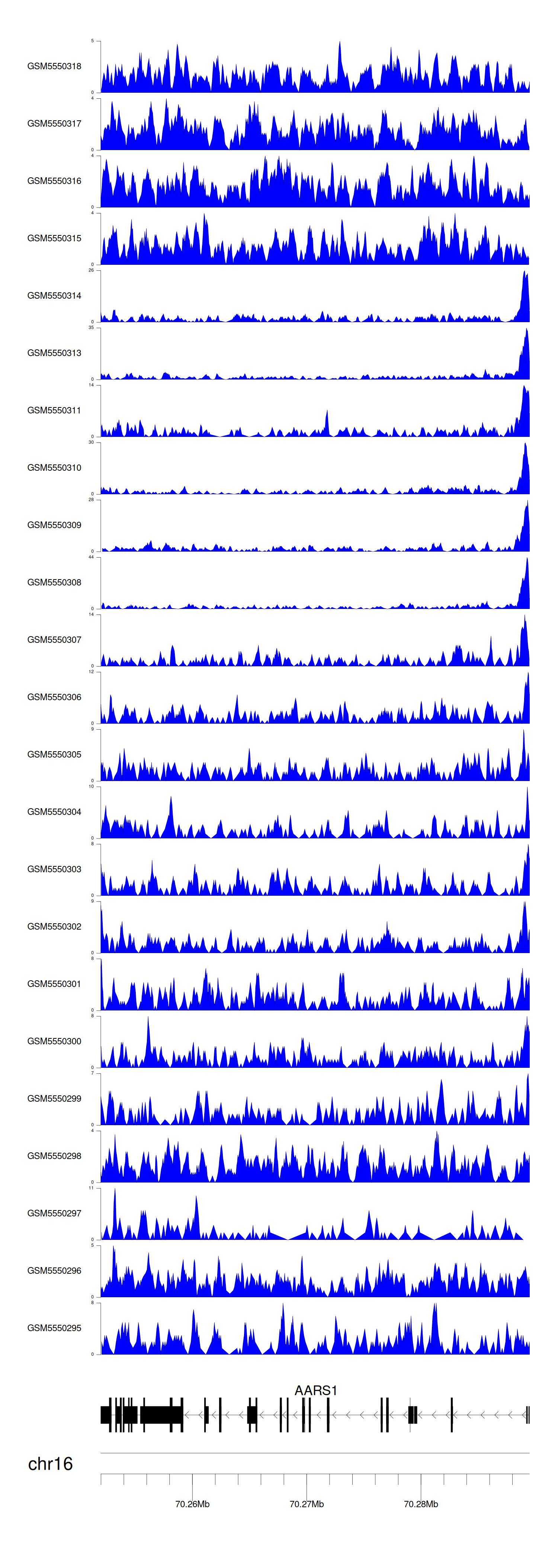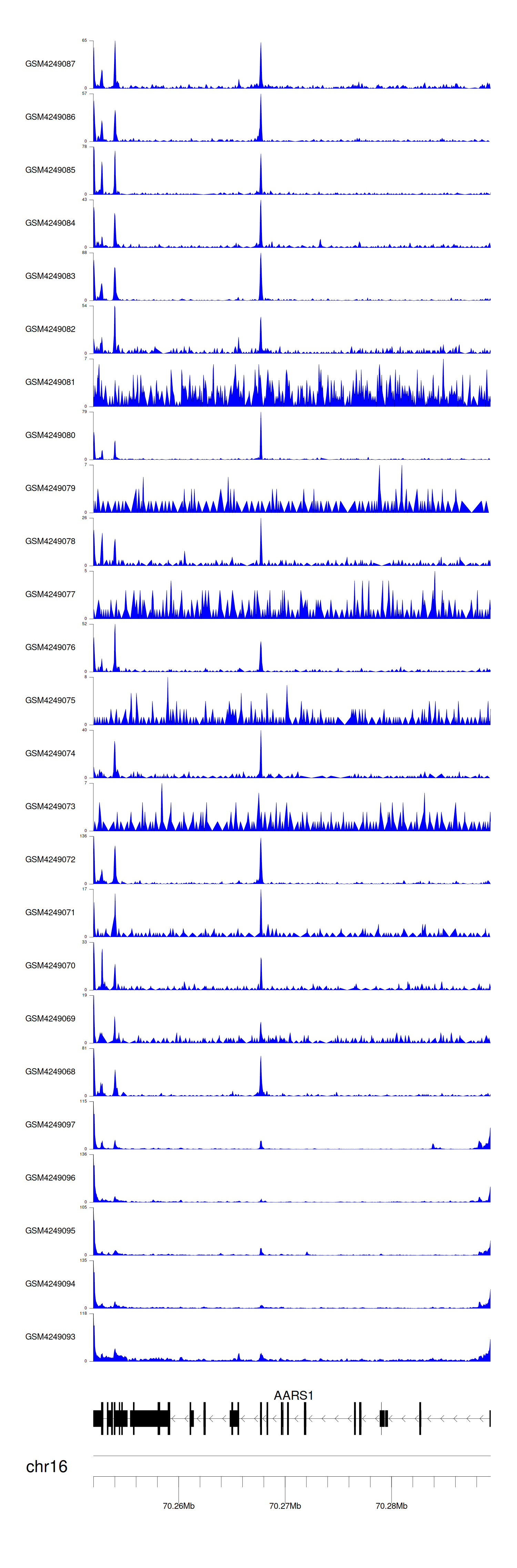 The human alanyl-tRNA synthetase (AARS) belongs to a family of tRNA synthases, of the class II enzymes. Class II tRNA synthases evolved early in evolution and are highly conserved. This is reflected by the fact that 498 of the 968-residue polypeptide human AARS shares 41% identity witht the E.coli protein. tRNA synthases are the enzymes that interpret the RNA code and attach specific aminoacids to the tRNAs that contain the cognate trinucleotide anticodons. They consist of a catalytic domain which interacts with the amino acid acceptor-T psi C helix of the tRNA, and a second domain which interacts with the rest of the tRNA structure. [provided by RefSeq, Jul 2008] |