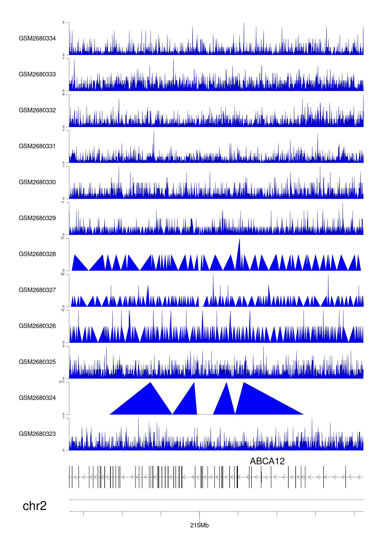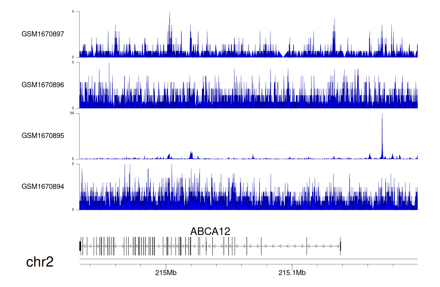 > Dataset: GSE100400 - ABCA12 peak across samples