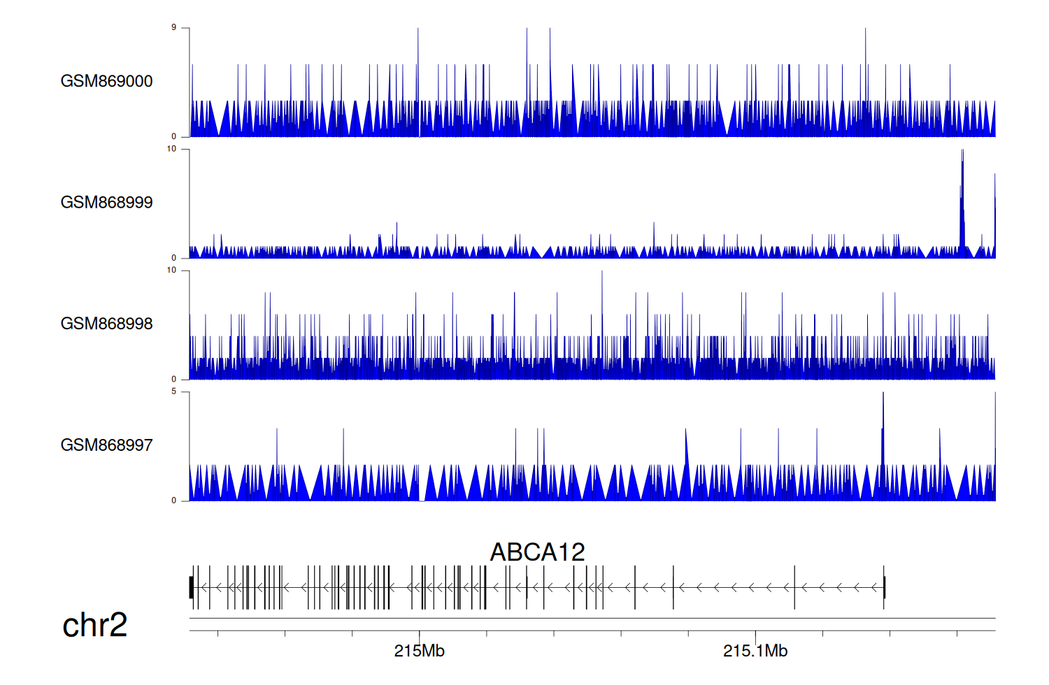 > Dataset: GSE68402 - ABCA12 peak across samples
