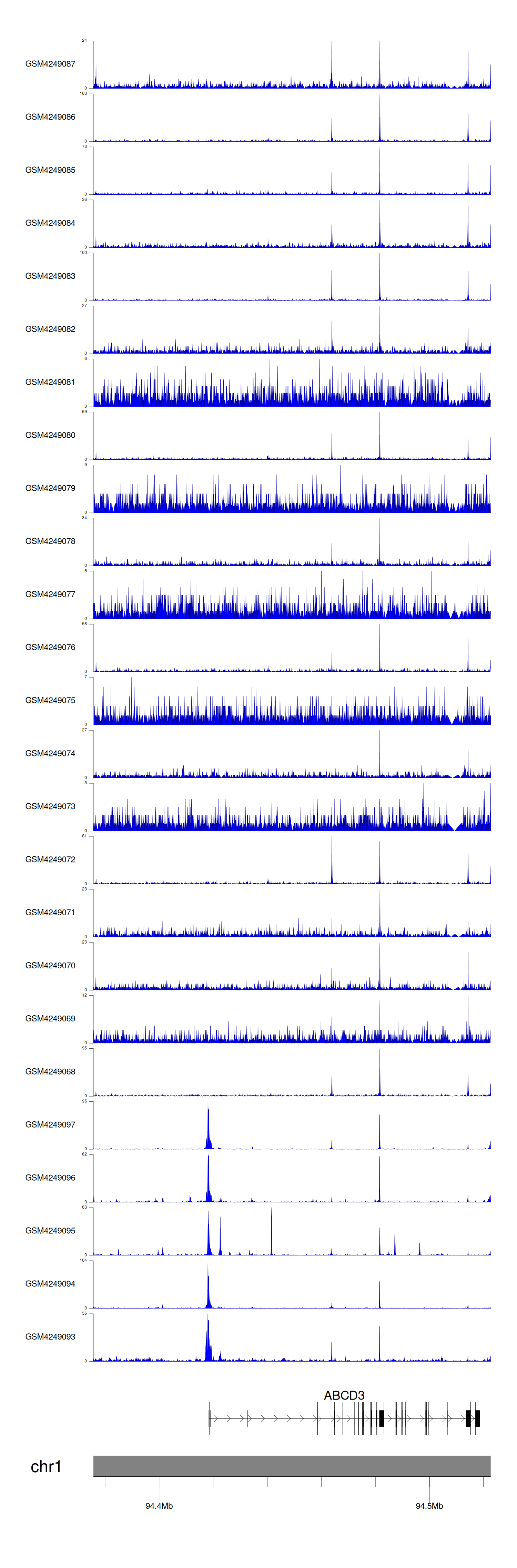 > Dataset: GSE143026 - ABCD3 peak across samples