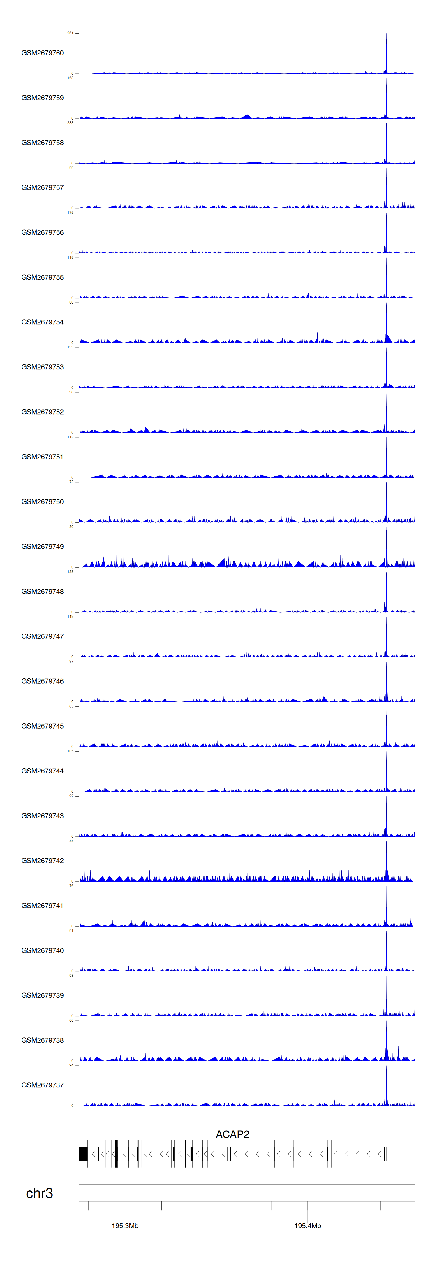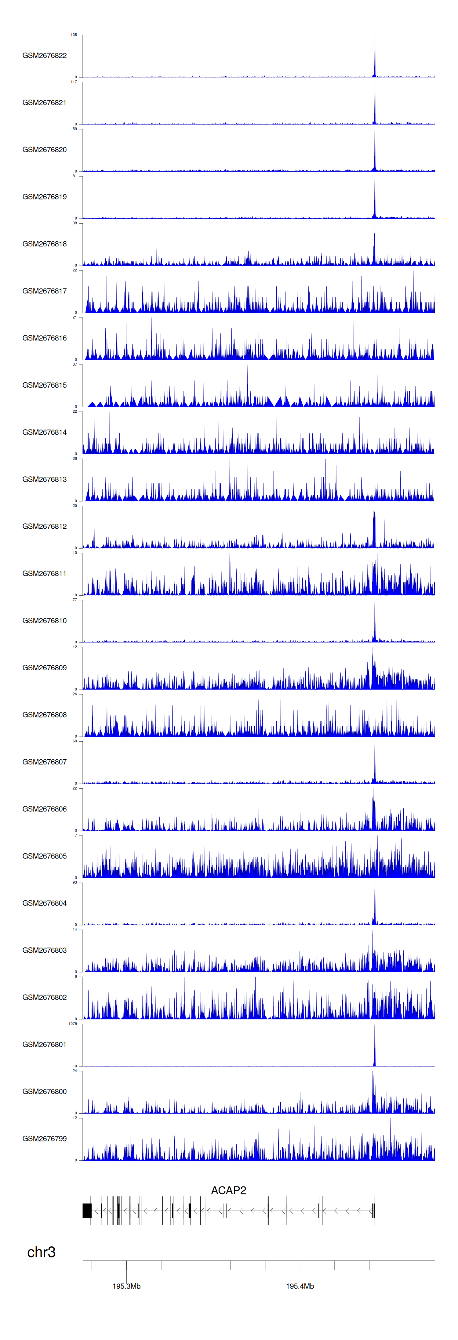 > Dataset: GSE100376 - ACAP2 peak across samples