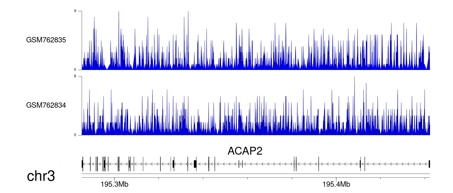 > Dataset: GSE30738 - ACAP2 peak across samples