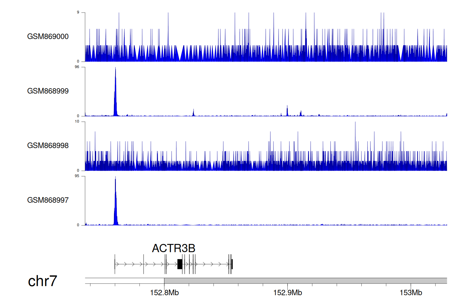 > Dataset: GSE64877 - ACTR3B peak across samples