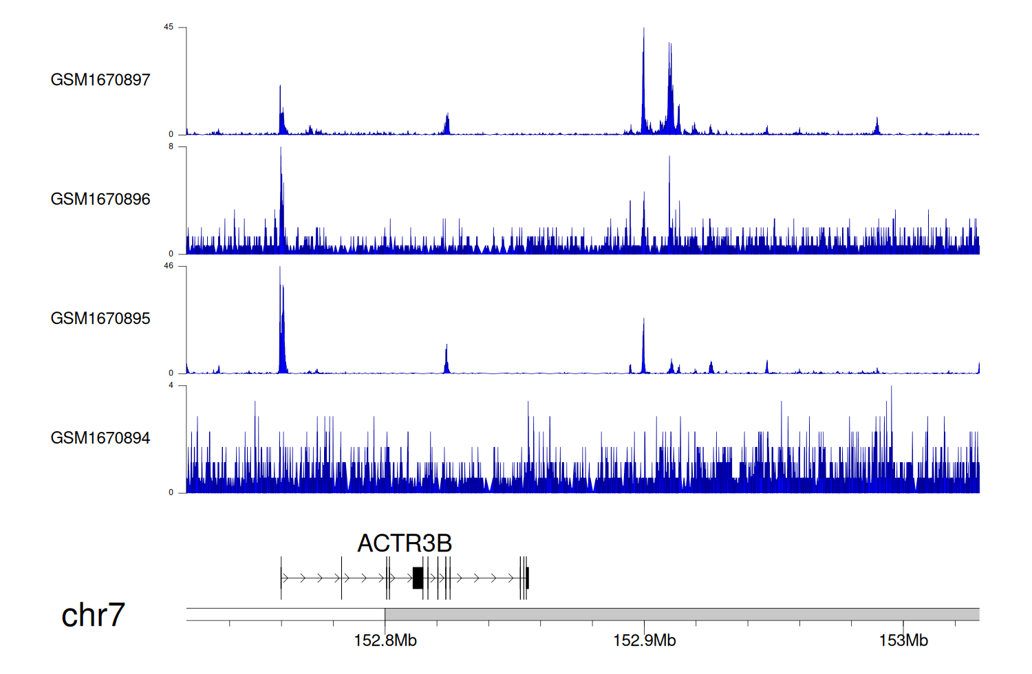 > Dataset: GSE100400 - ACTR3B peak across samples