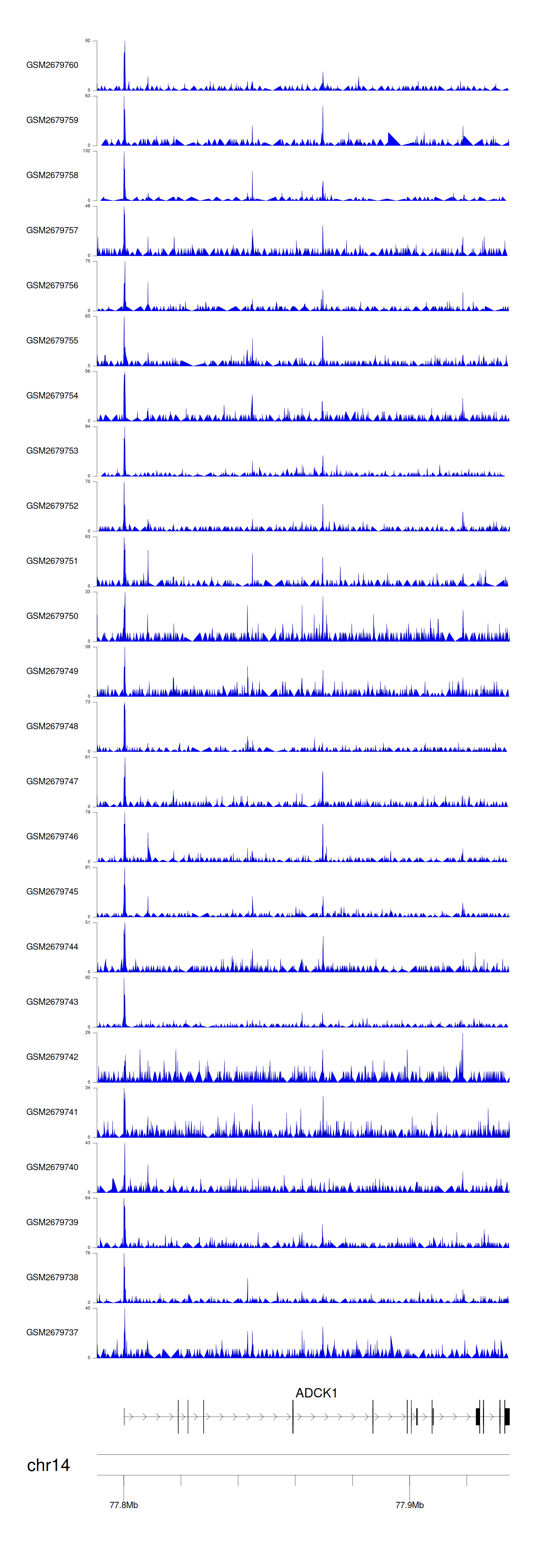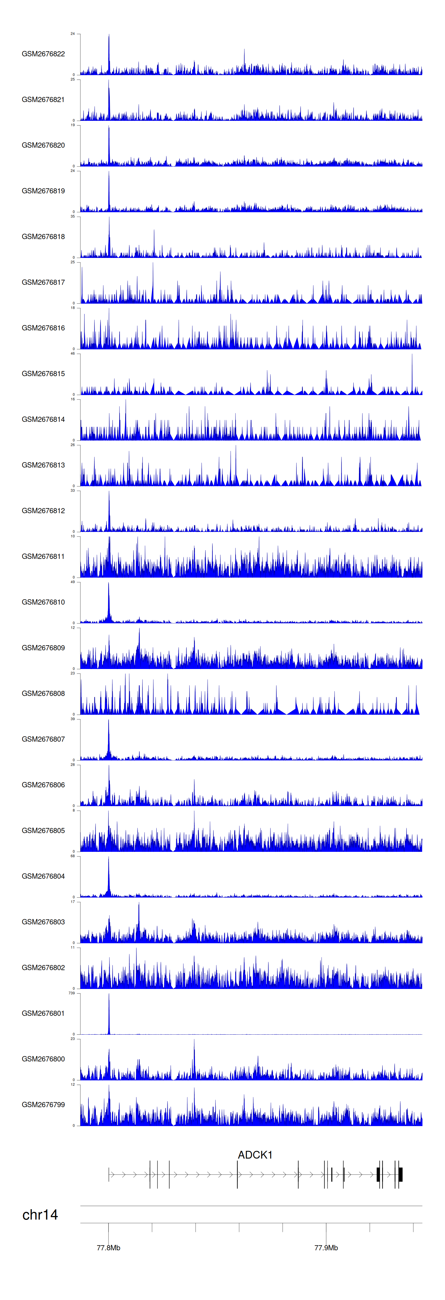 > Dataset: GSE100376 - ADCK1 peak across samples