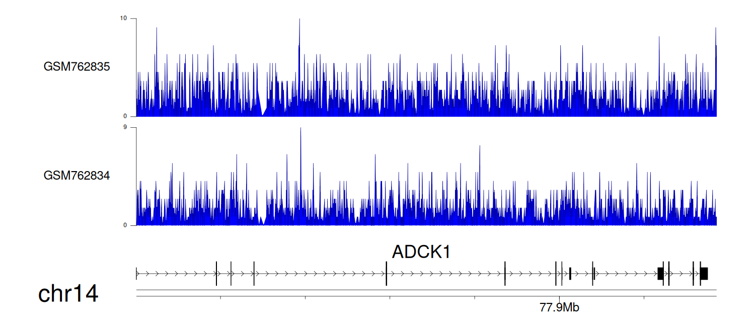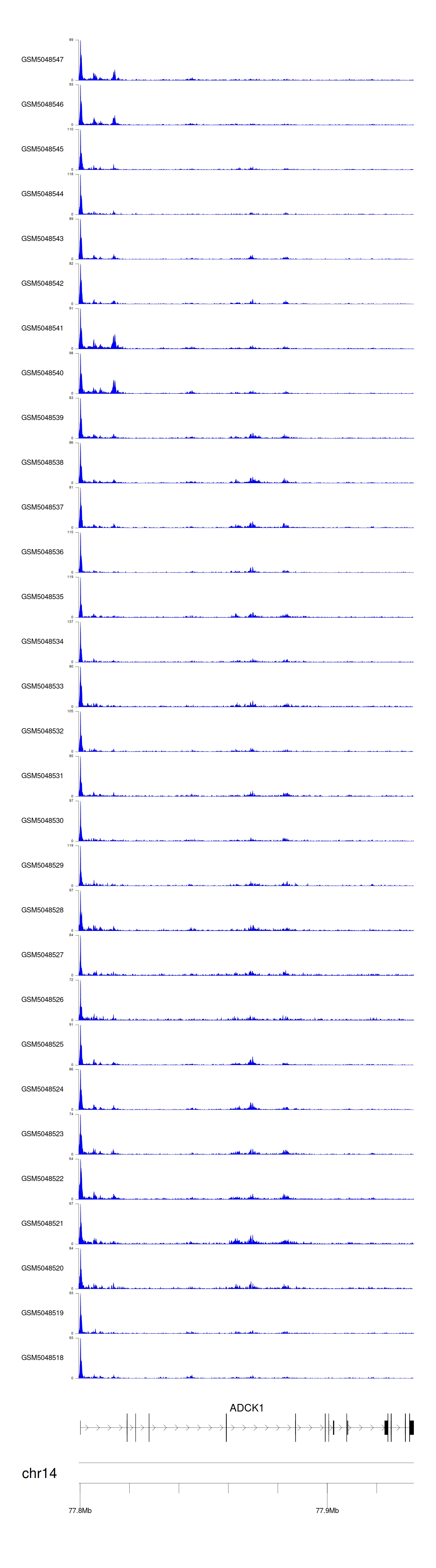 > Dataset: GSE30738 - ADCK1 peak across samples
