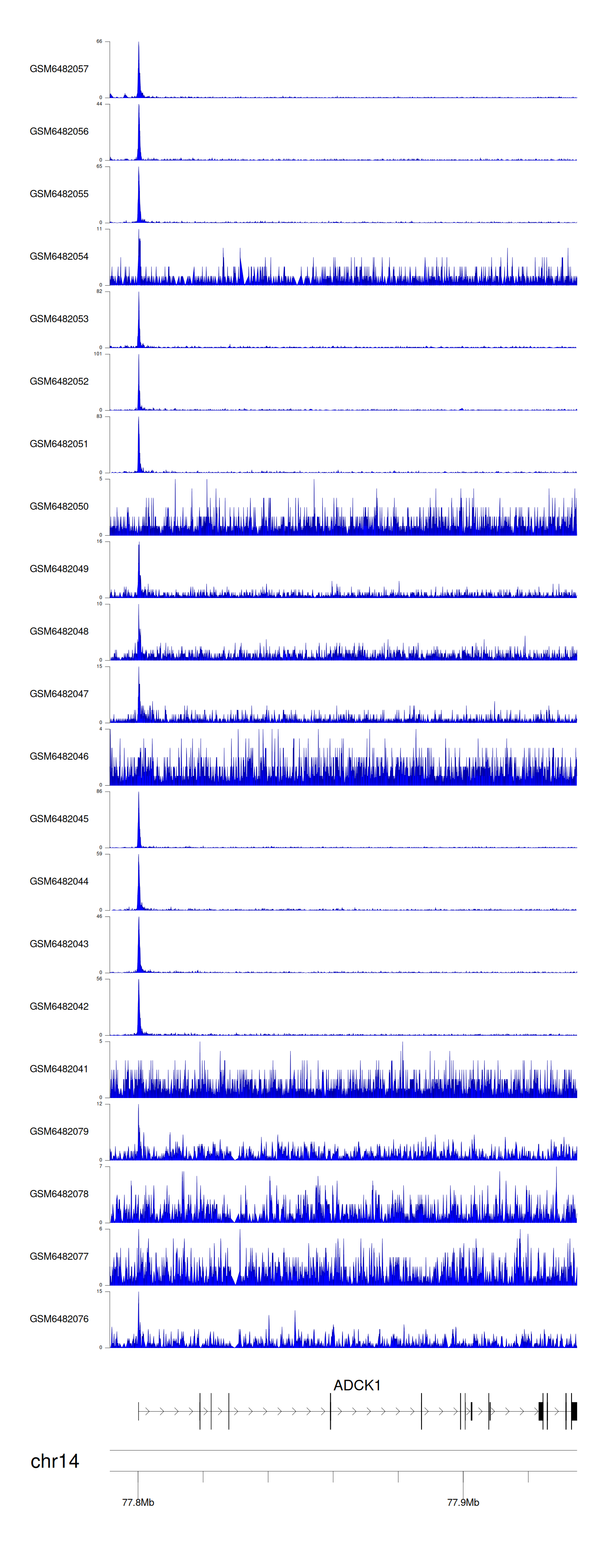 > Dataset: GSE165705 - ADCK1 peak across samples